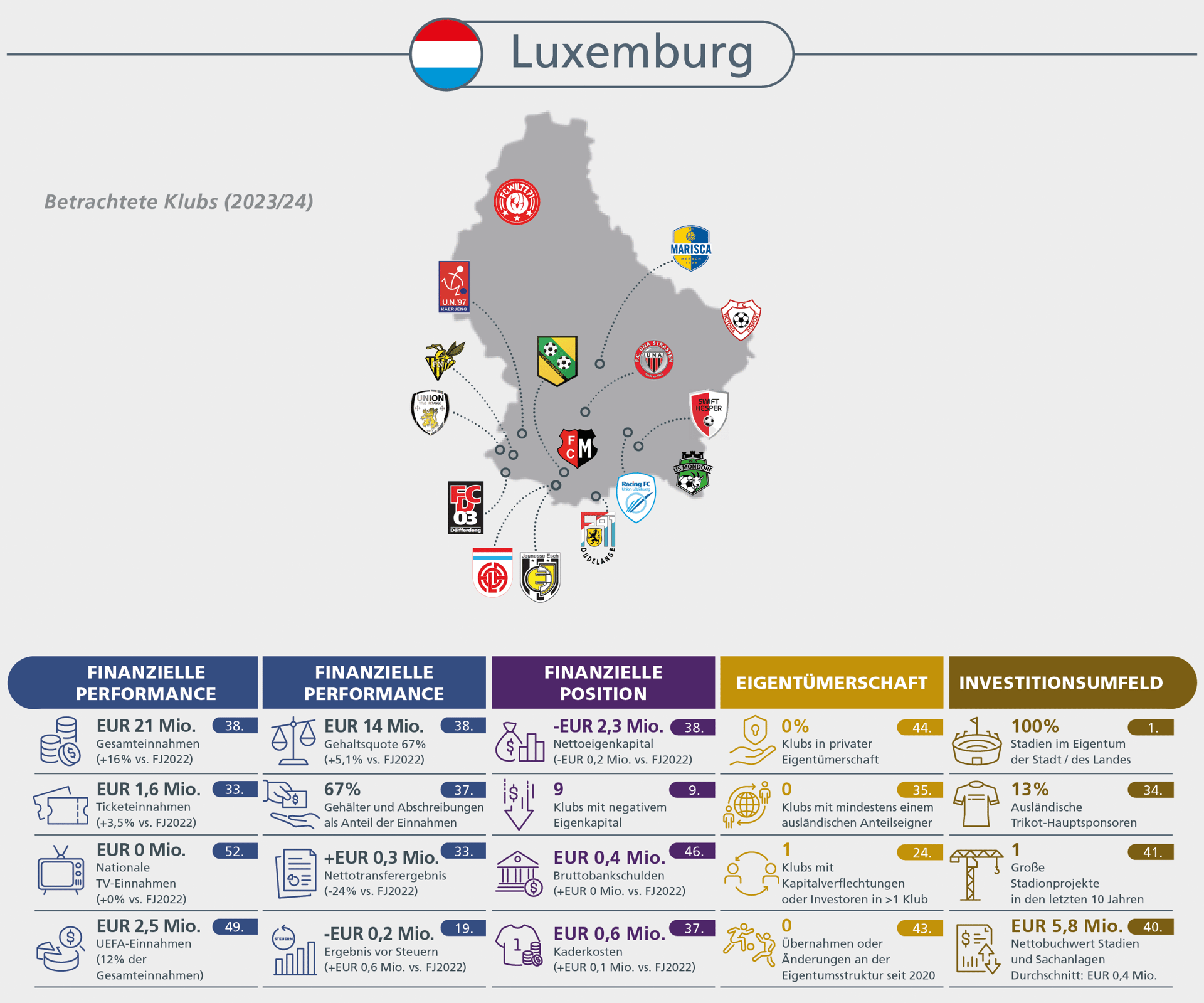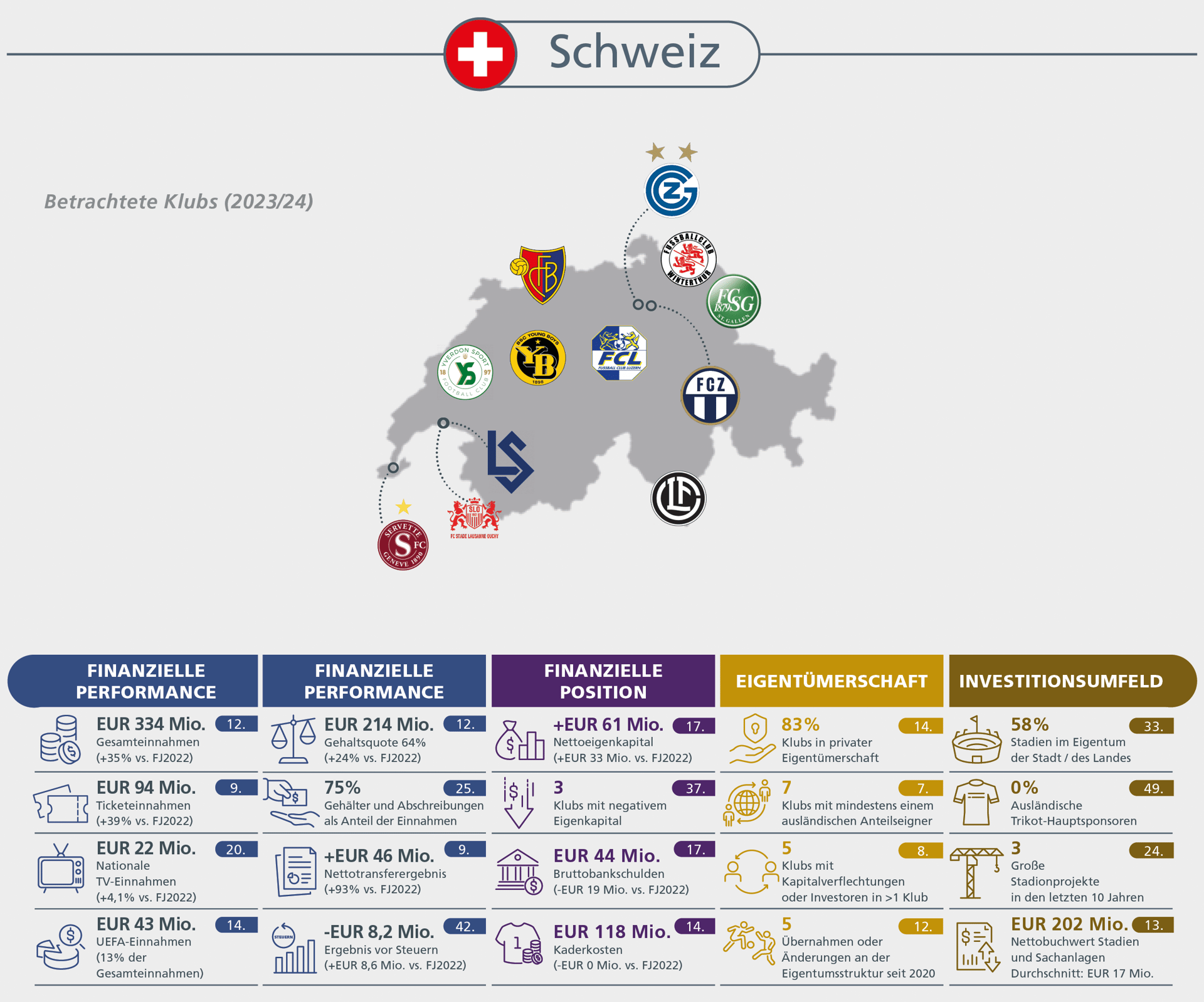 Im gesamten bericht sind 12 verschiedene klubvergleiche enthalten, von denen nachfolgend einige kriterien vorgestellt werden.