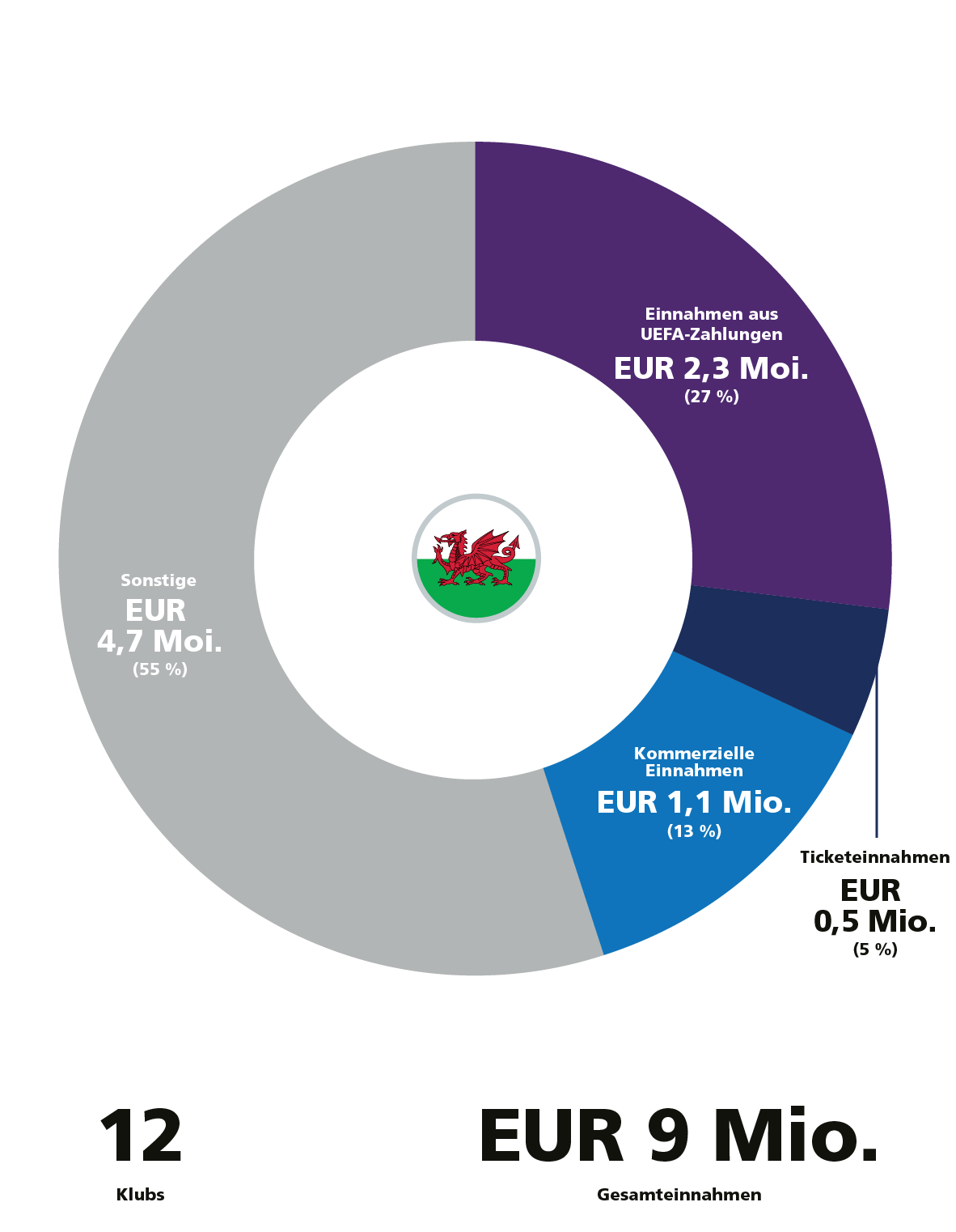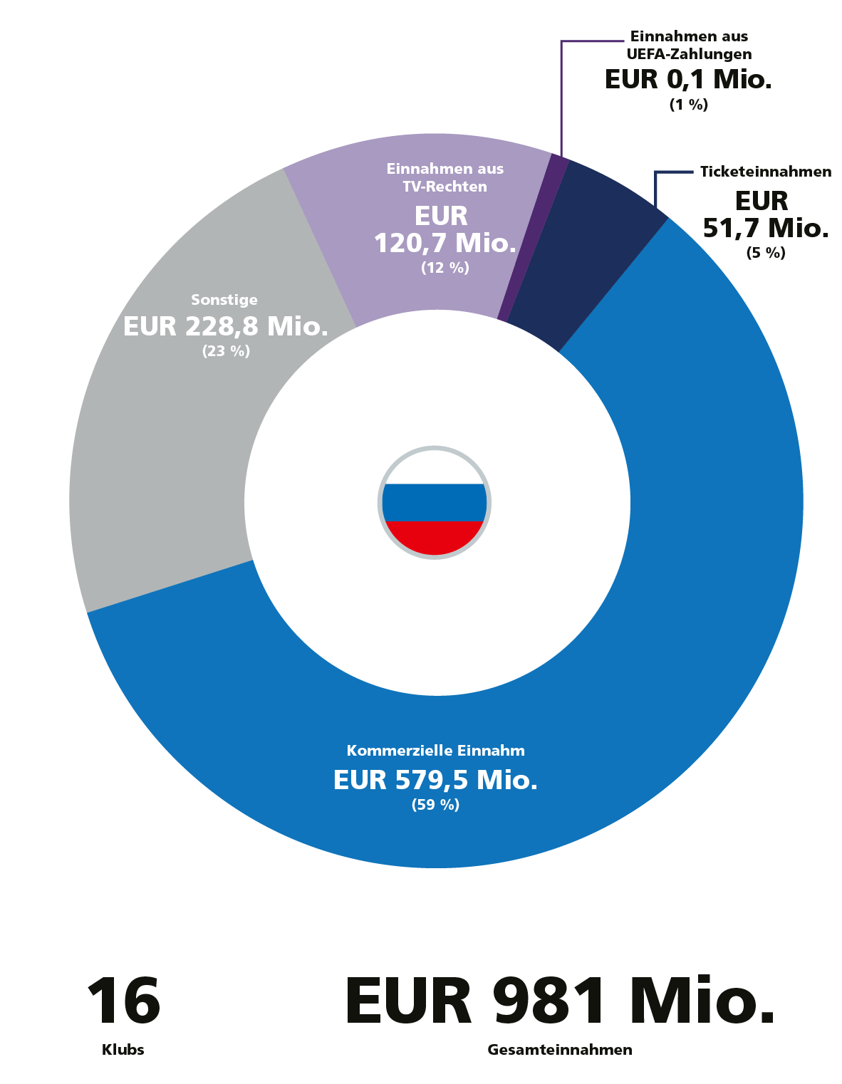 Polarisierende Einnahmen an der Spitze mit einer Lücke von über EUR 300 Mio. zwischen dem Klub auf Platz 8 und Platz 12 in der Rangliste der Klubs mit den höchsten Einnahmen.