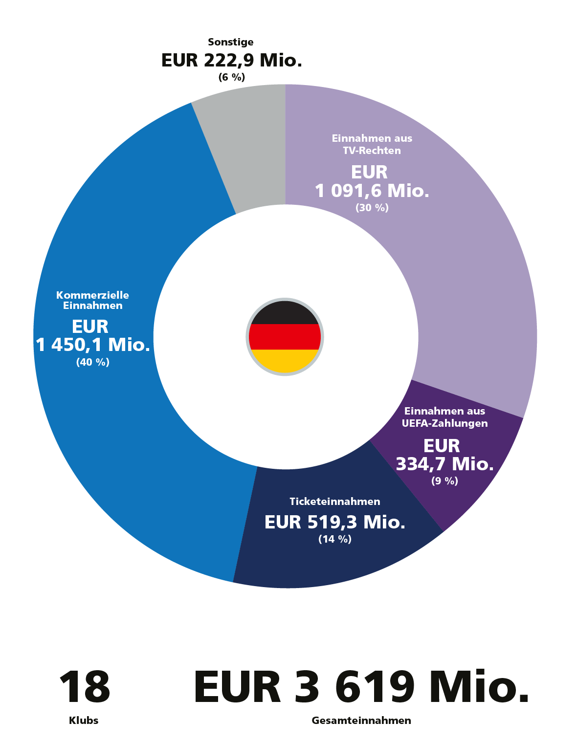 Rekordeinnahmen der erstligisten von EUR 26,8 mrd. im jahr 2023.
